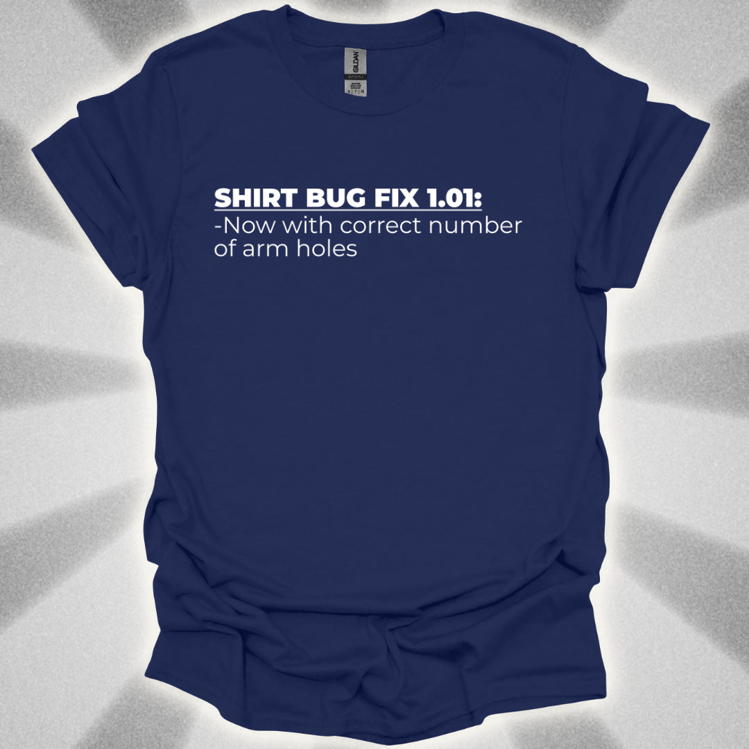 Good news! The latest update has patched a critical flaw in your wardrobe. No longer will you struggle with extra or missing armholes—this version has the correct number! (We regret the oversight in v1.0.) This shirt is perfect for tech nerds, software devs, and anyone who appreciates a good bug fix in both code and clothing.